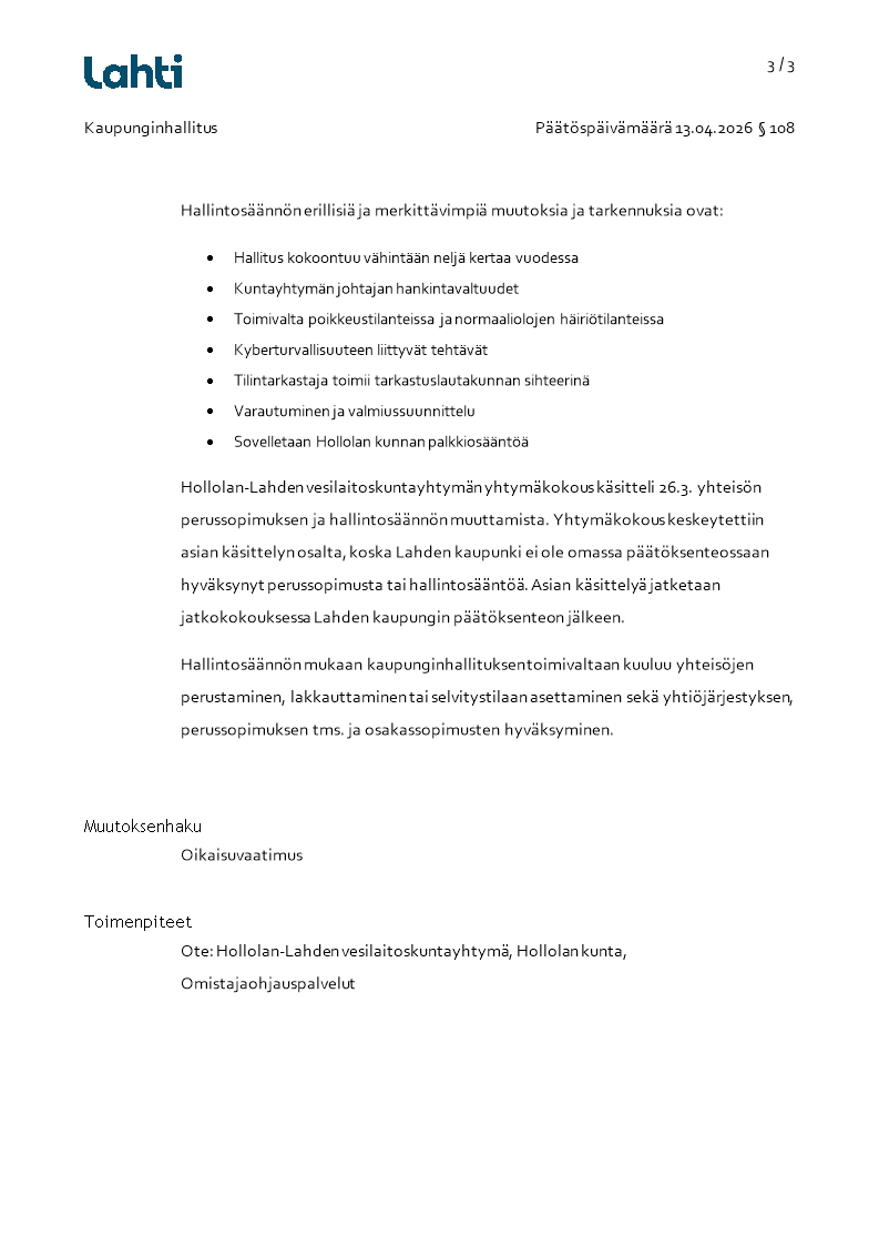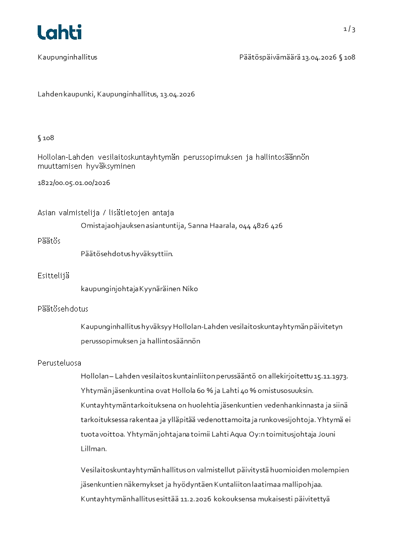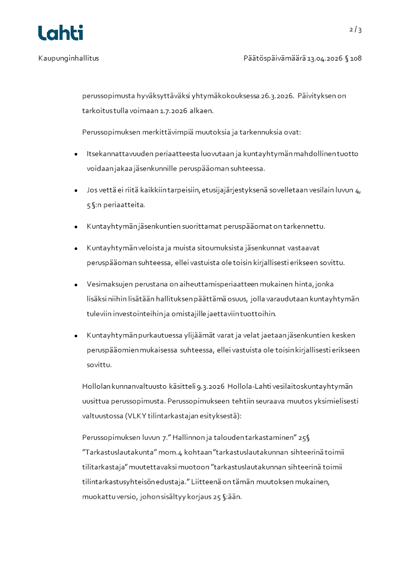 Pöytäkirja 13.04.2026/Pykälä 108