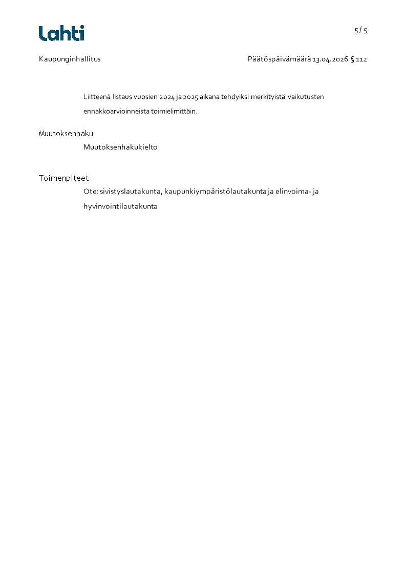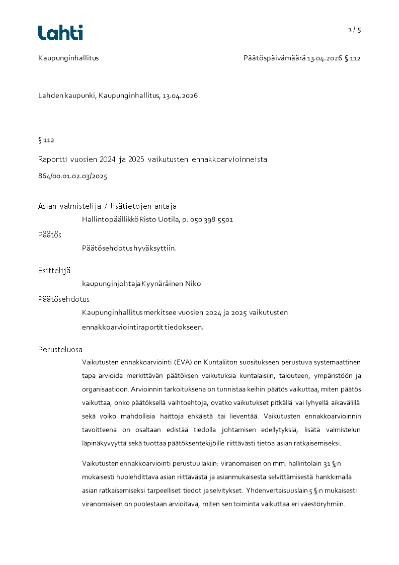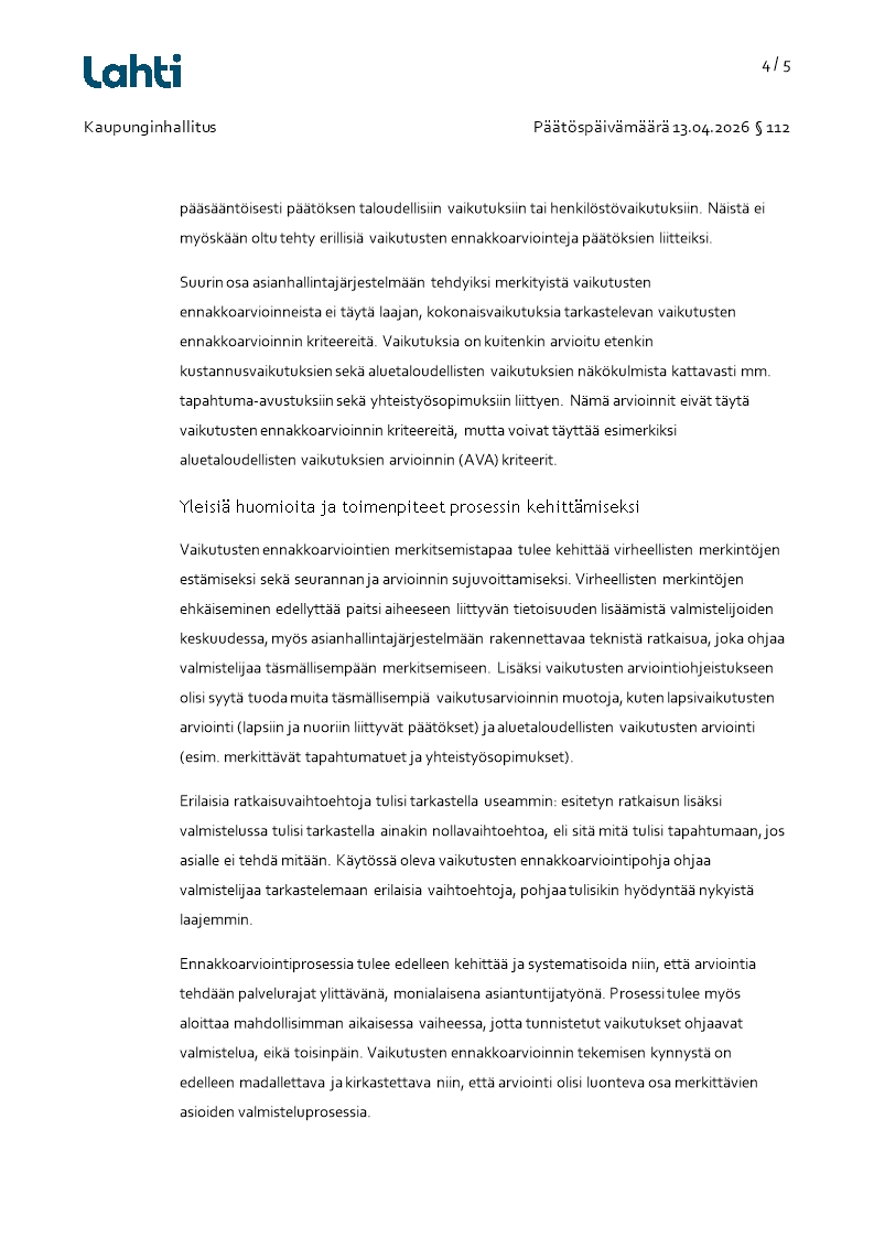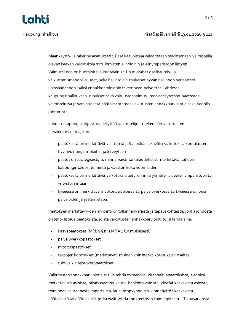 Pöytäkirja 13.04.2026/Pykälä 112