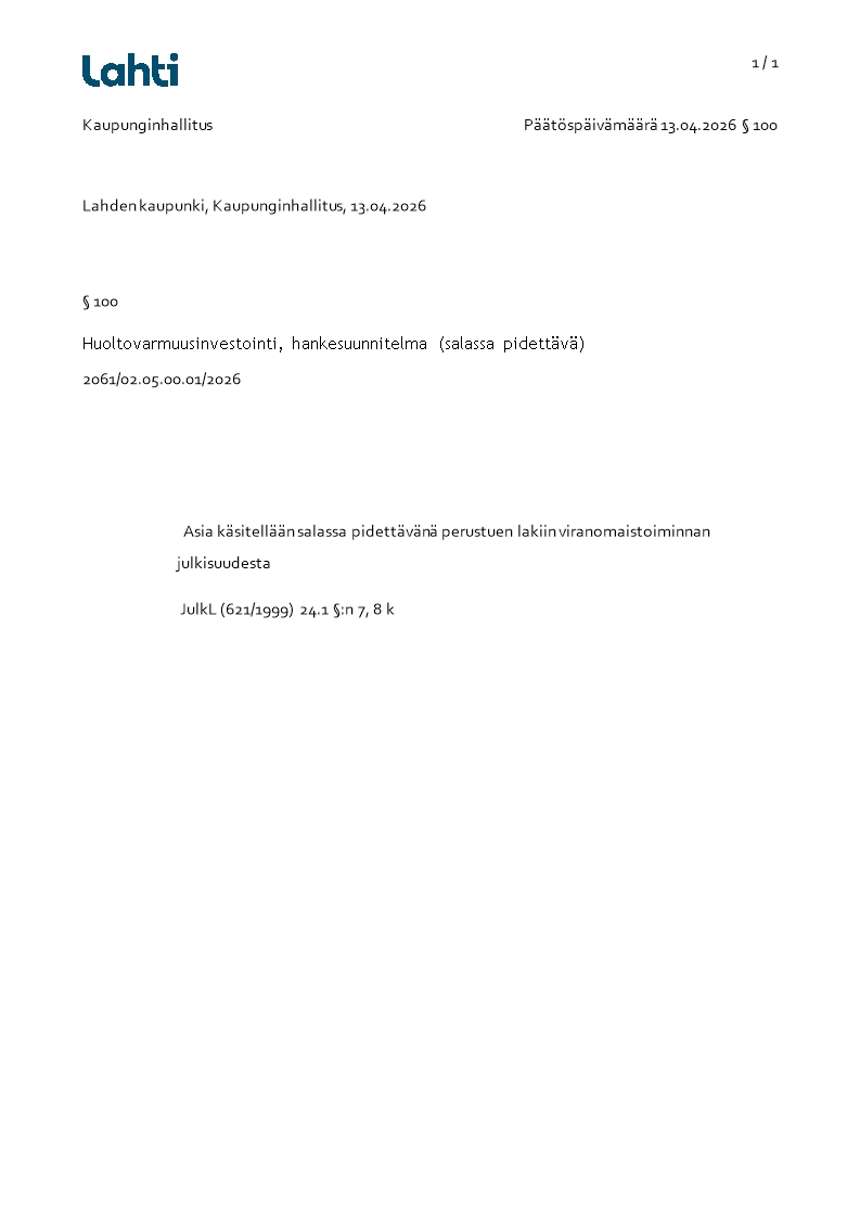 Pöytäkirja 13.04.2026/Pykälä 100